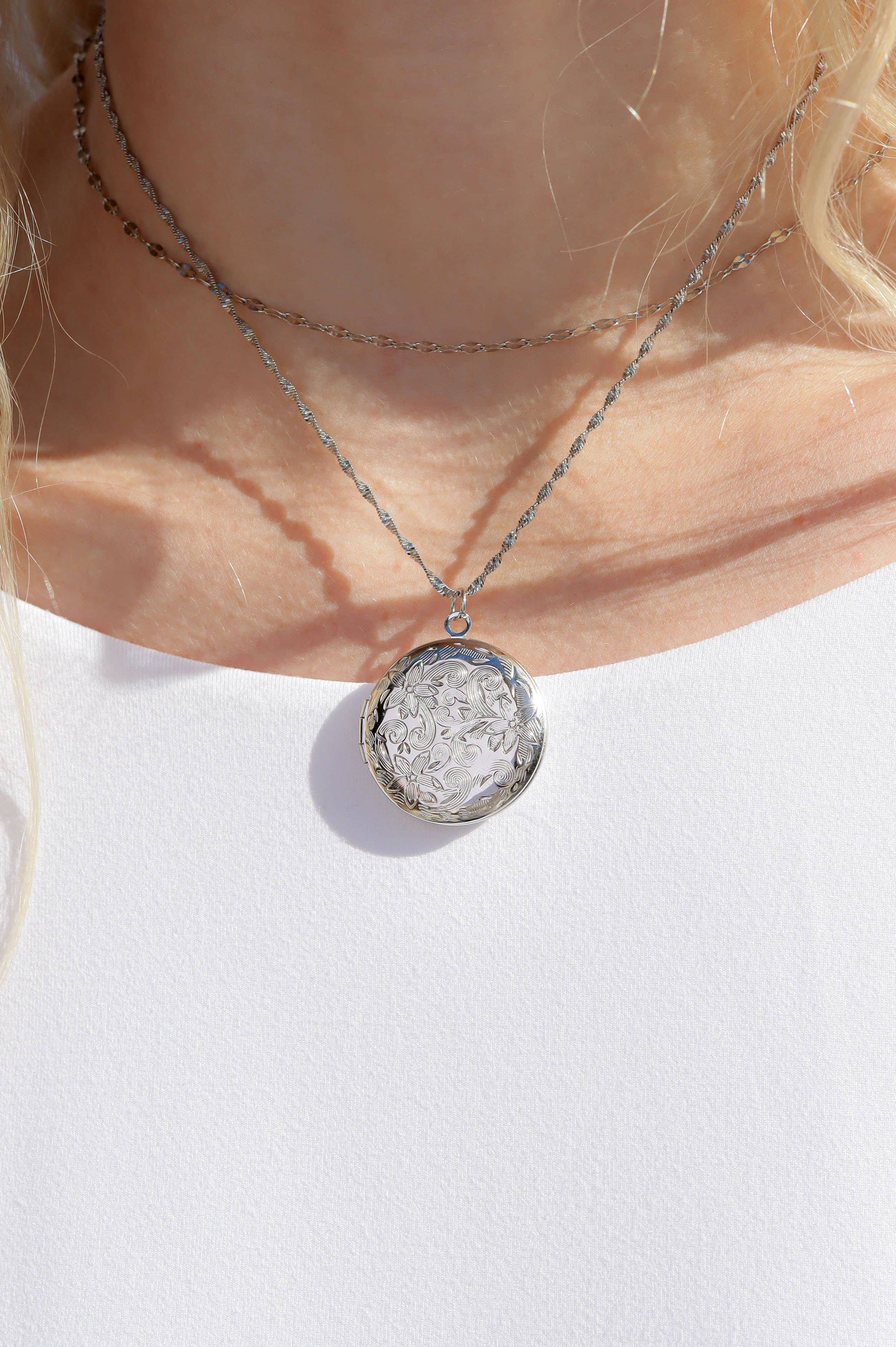 Embrace timeless elegance with this stunning 18K Gold PVD Stainless Steel Round Floral Textured Locket. This round locket is a beautiful blend of style and sentiment. The intricate floral texture on its surface adds a touch of vintage-inspired charm, making it a standout accessory. Designed to open, the locket features a hidden compartment to keep a treasured photo or keepsake close to your heart.