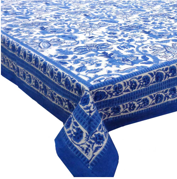 Our Ellis Morning Tablecloth is hand block printed, showcasing intricate, timeless craftsmanship, made with traditional techniques passed down through generations. Each design is carefully stamped onto the fabric using hand-carved wooden blocks, creating a one-of-a-kind pattern that reflects both artistry and heritage. The vibrant colors and detailed motifs bring a warm, inviting feel to any dining setting, adding an elegant yet cozy touch to your table. Perfect for special occasions or everyday use, this tablecloth is a beautiful fusion of culture, nature, and style, elevating your home with a handcrafted touch. For a darker colorway in the reverse see our Ellis Evening print.